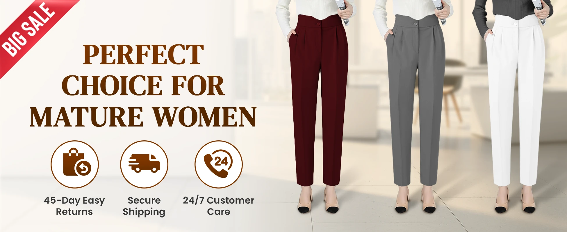 LoraGrace pants are crafted with seniors’ comfort in mind - blending quality fabric, care, and elegance to give mature women the peace and beauty they deserve